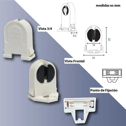 Base Porta-lampara Tubo T5 G5 Insercion 10x20mm